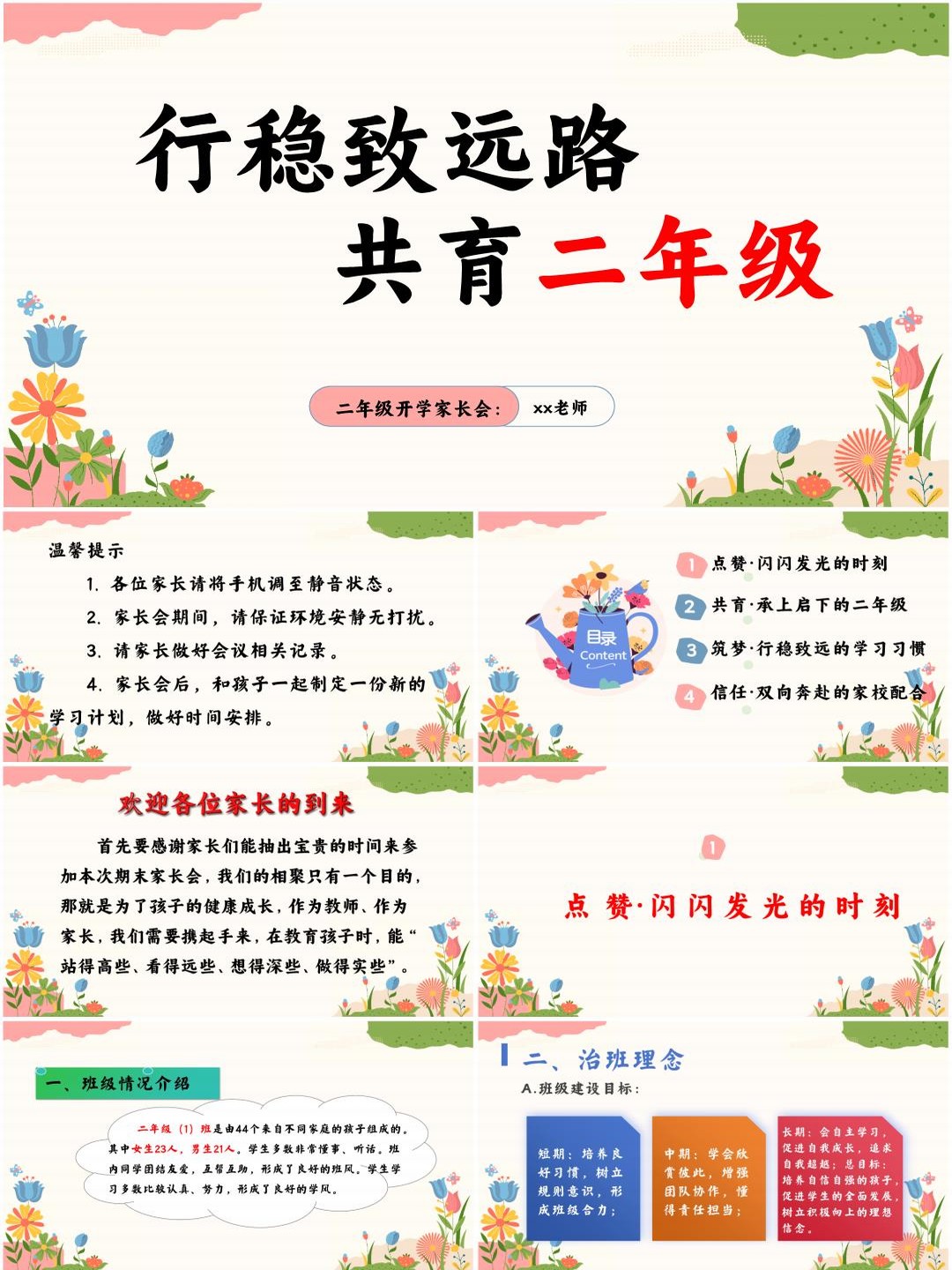 二年级下学期第二学期开学家长会语文开学家长会PPT课件《行稳致远路,共育二年级》(含发言稿)