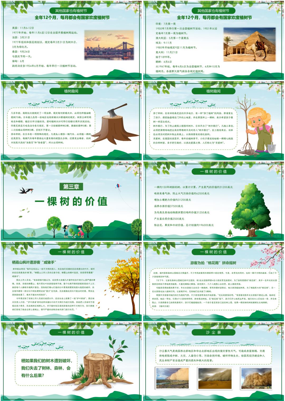 中小学植树节主题班会PPT课件《珍爱绿色》(含发言稿)