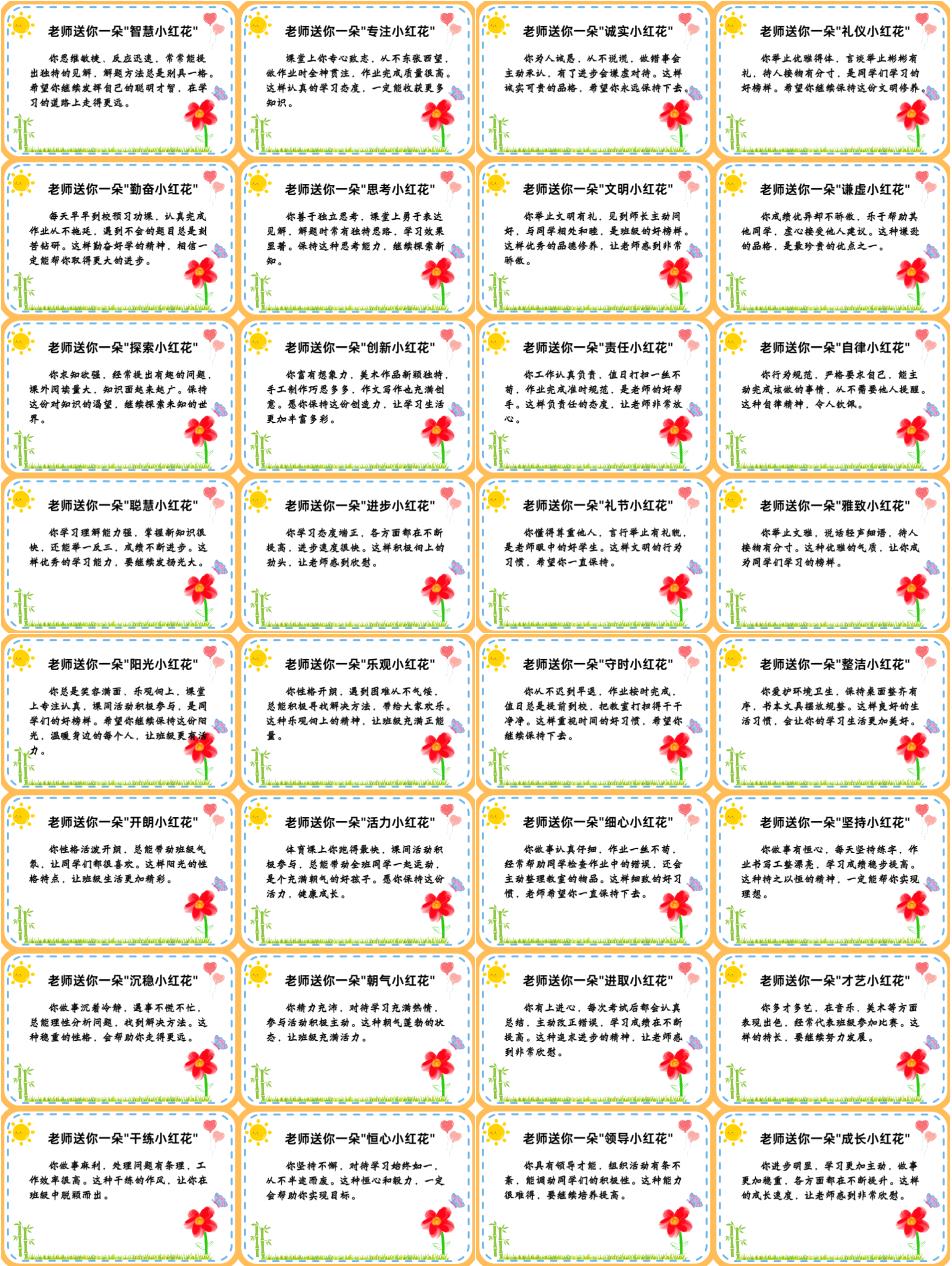 小学期末评语《老师送你一朵小红花》系列PPT(40条)