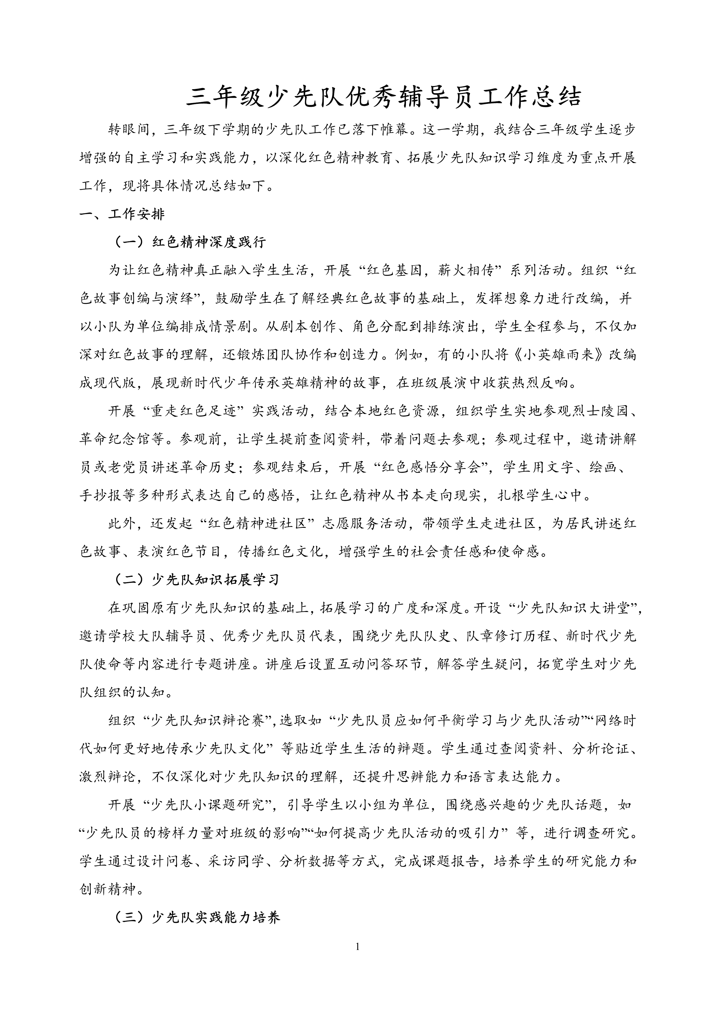 转眼间,三年级下学期的少先队工作已落下帷幕。这一学期,我结合三年级学生逐步增强的自主学习和实践能力,以深化红色精神教育、拓展少先队知识学习维度为重点开展工作,现将具体情况总结如下。