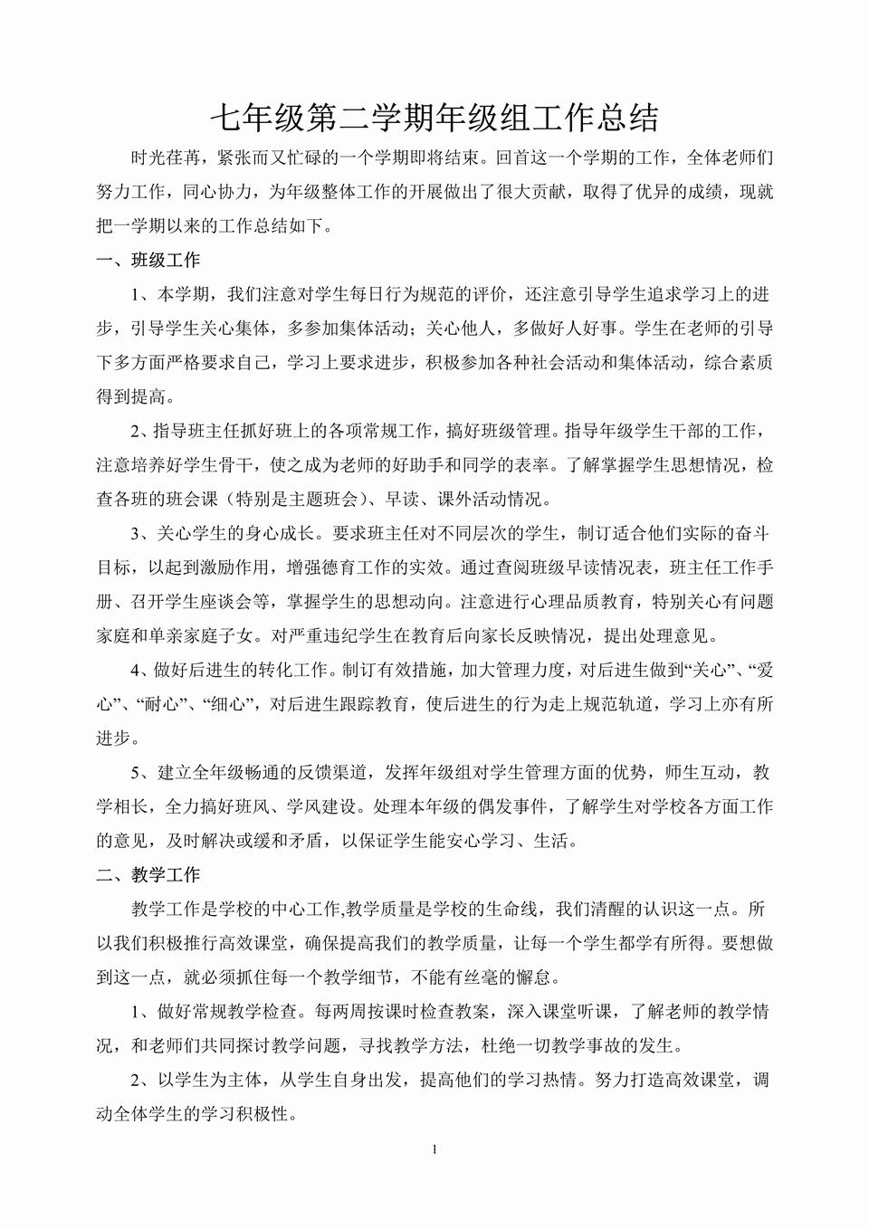 七年级第二学期年级组工作总结